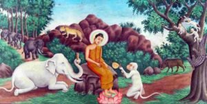 Buddhist stories often feature animals. These tales, called Jataka tales, tell about the Buddha’s past lives. They teach us to be kind, to have patience, and to think about what our actions might cause.