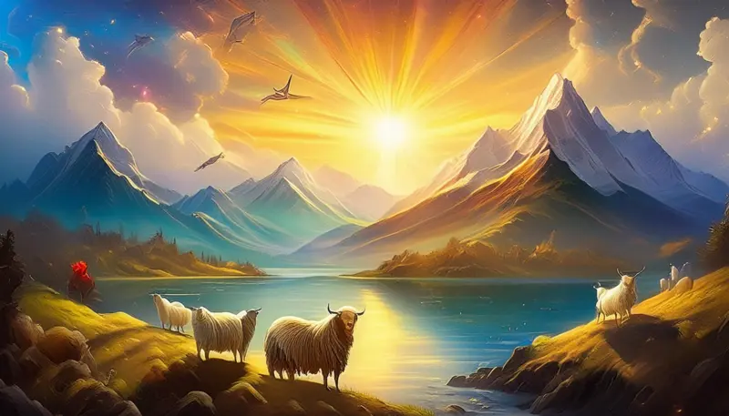 On the second day, God made a big, blue dome to separate the water above from the water below. This dome became the sky we see every day, with its fluffy clouds and colorful rainbows.