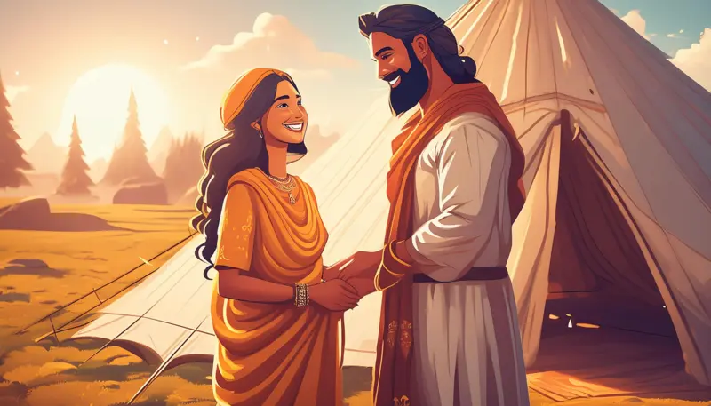 Once upon a time, in a land far away, lived a kind and wise man named Abraham. He had a wonderful wife named Sarah, and they loved each other very much. Abraham and Sarah lived in a tent, and they traveled from place to place, always trusting in God to guide them.