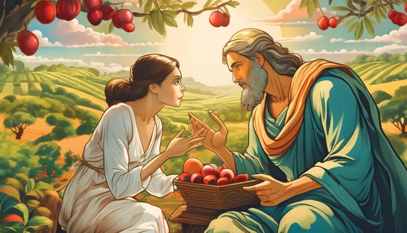 One day, a sly serpent came along and tempted Eve to eat the forbidden fruit. Eve gave some to Adam, and they both ate it. Immediately, they realized they had done something wrong. They felt ashamed and tried to hide from God.